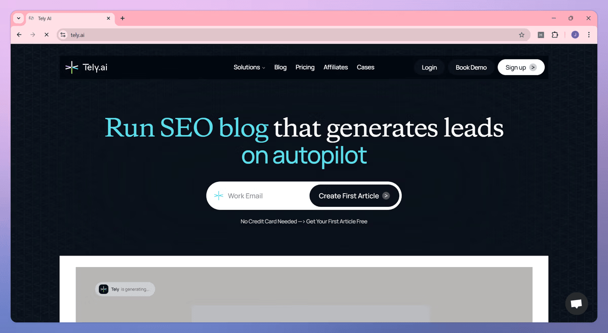 That’s why we’re excited to test Tely AI. It’s basically a content engine that runs on autopilot - researching, writing, and publishing blog posts that are designed to rank and drive leads.